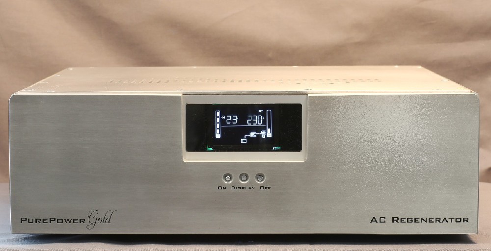Nejnovější verze PurePower 2000 Gold má nový displej, který indikuje mnohem více parametrů. Kromě standardního vstupního a výstupního napětí a frekvence a napětí baterie také procento nabití baterie, vstupní a výstupní proud, úroveň výstupu v procentech a vnitřní teplotu. Výstupní napětí PP Gold 2000 lze nastavit v rozsahu 208 - 240 voltů. Přístroj lze manuálně přepínat mezi přímým připojením k síti a výstupem PurePower (např. pro testování).